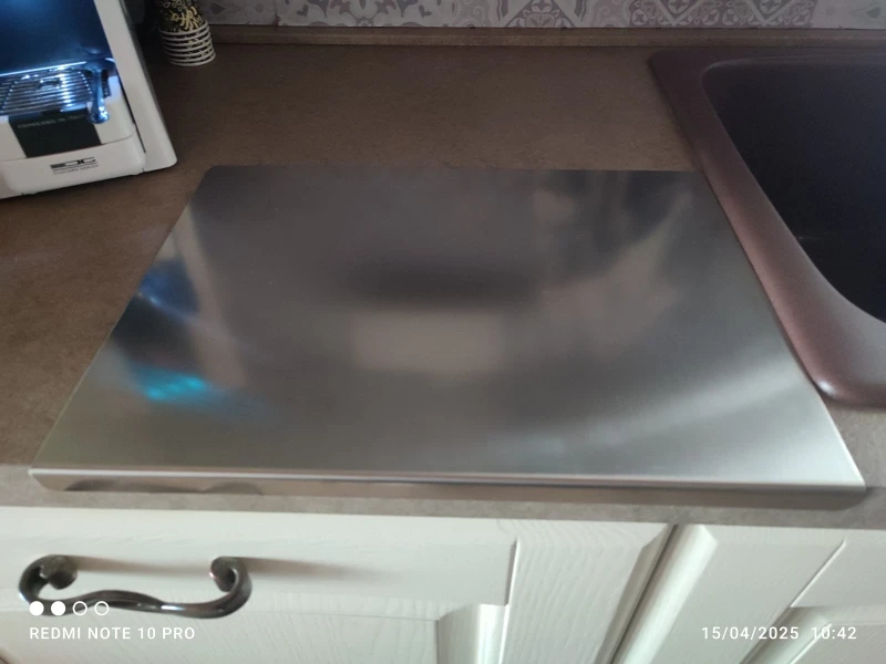 Our stainless steel chopping board offers a practical and stylish solution for all your kitchen food preparation needs. Its large size and non-slip design make it a must-have for any kitchen.
